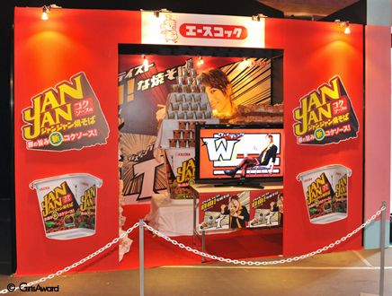 これまでにない斬新でユニークな「タテ型カップ」と弾力のあるソース練り込み麺のおいしさで、カップ焼きそばの手軽でスタイリッシュな食べ方を提案した「JANJAN焼きそば」のディスプレイとサンプリングを実施しました。