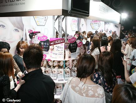 CanCamの専属モデル舞川あいくさんがプロデュースするつけまつげ全17種類をGA限定のスペシャル価格で販売。さらにつけまつげをお買い上げの方には、舞川あいくさんとの記念撮影など豪華な景品が当たる抽選会にも参加いただきました。舞川あいくさんご本人もブースに駆けつけてトークショーを開催し、たくさんのファンが集まりました。