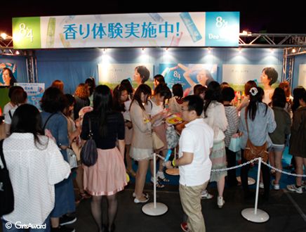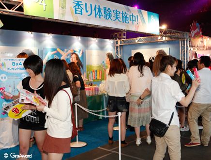 8つの香りのパウダースプレーと、5つの香りのデオウォーターの無料体験コーナーではたくさんの女の子たちがタッチ&トライし、多彩な香りを楽しんでいました。また、商品が当たる抽選会も実施しました。
