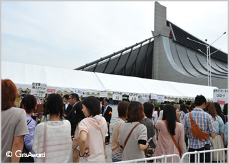 いよいよ開場まで20分を切りました!会場前には続々とたくさんの人が集まってきてます。スタッフのボルテージもマックスにあがってきてますょ☆こちらでは、会場内の様子を順次お届けしていきますので、お楽しみに♡