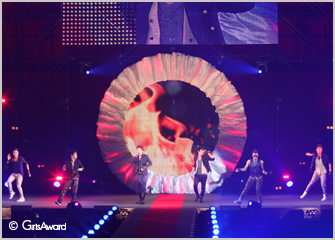 1st Showが終了後、LIVE PERFORMANCEはE-Girlsで幕開け!!Dream/Happiness/FLOWERの3組を中心とする、スタイル抜群の21名が登場した瞬間、会場は歓声でいっぱいに!圧巻のオープニングダンスから、One Two Treeを抜群の歌唱力とキレのあるダンスでクールにパフォーマンスを披露し、会場を盛り上げました。